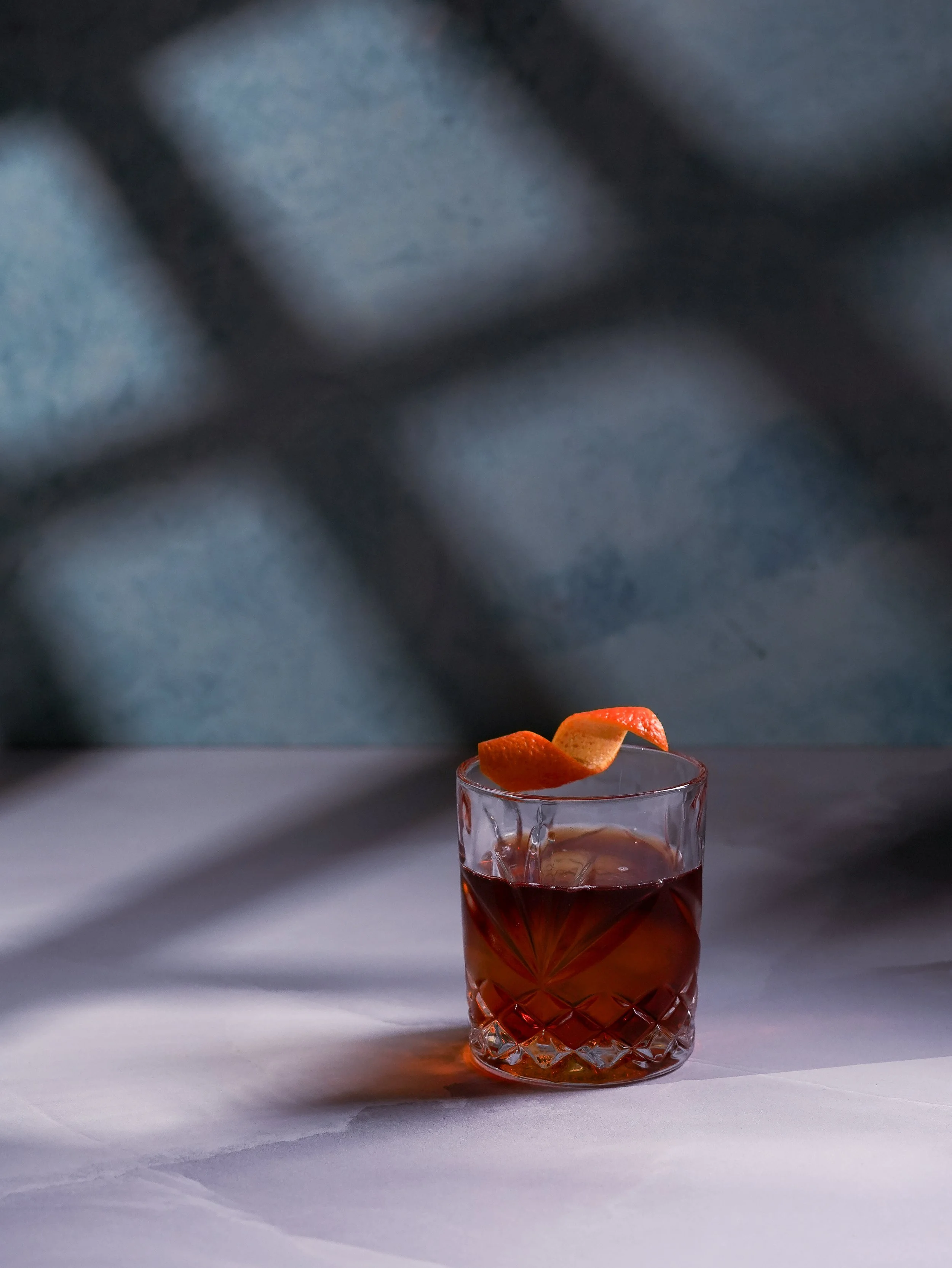 Stir, strain over large clear ice. Garnish with orange twist. Cheers!!